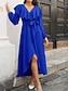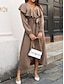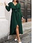 Dam Midiklänning Wrapklänning A linjeklänning Ledigt Dagligen Normal Slät Långärmad V-hals Blå Svart Brun Grön Sommar Vår Höst