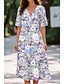 Dam Maxiklänning A linjeklänning Semester Ledigt Utomhus Utekväll Lös passning Blommig Grafisk Halvlång ärm V-hals Blå Gul Rubinrött Purpur Sommar Vår Höst