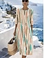 Dam Midiklänning Vardagsklänning A linjeklänning Elegant Strand Normal Grafisk Rand Kortärmad Tröjkrage Blå Gul Rodnande Rosa Grå Sommar Vår