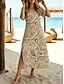 kvinnors chiffong maxiklänning solklänning mantelklänning A-linjeklänning figursydd och utsvängd klänning semesterfest strandfest bröllop normal passform blommig grafisk ärmlös bar axel blå vit vit