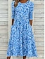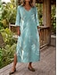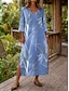 Dam Maxiklänning Boho-klänning Skiftklänning Solklänning Linne Klänning bohemliv Semester Etnisk Strand Helgdag Datum Lös passning Grafisk Abstrakt Tropisk 3/4 ärm V-hals Blå Sommar Vår