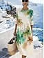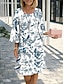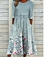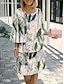 Dam Knälång klänning Skiftklänning Ledigt Normal Blommig Grafisk Löv 3/4 ärm Rund hals Blå Rodnande Rosa Grön Sommar Vår
