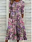 Dam Midiklänning Skiftklänning Semester Ledigt Boho Normal Blommig Grafisk Halvlång ärm Rund hals Rubinrött Grön Beige Sommar Vår