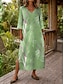 Dam Midiklänning A linjeklänning Semester Ledigt Dagligen Lös passning Blommig Grafisk Långärmad V-hals Blå Rodnande Rosa Grön Sommar Vår