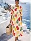 Dam Maxiklänning Solklänning T shirtklänning A linjeklänning Semester Ledigt Strand Utekväll Lös passning Nyans Hjärta Grafisk Kortärmad V-hals Gul Rodnande Rosa Orange Sommar Vår