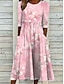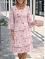 Dam Knälång klänning Skiftklänning Ledigt Normal Blommig Grafisk 3/4 ärm Rund hals Rodnande Rosa Orange Grön Sommar Vår