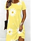 Dam Midiklänning Skiftklänning T shirtklänning Ledigt Dagligen Normal Blommig Grafisk Daisy Kortärmad Rund hals Ljusgul Sommar Vår
