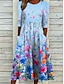 Dam Midiklänning Skiftklänning Semester Ledigt Boho Normal Blommig Grafisk Halvlång ärm Rund hals Blå Gul Rodnande Rosa Grön Sommar Vår