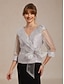 Dam Dressiga toppar Ensfärgat Elegant 3/4 ärm V-hals Vanliga toppar Bröllopsgäst Cocktailklädsel Rynkad Illusion Ljusgrå Sommar Vår Höst