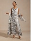 Dam Maxiklänning Chiffongklänningar Solklänning A linjeklänning Elegant Semester Dagligen Semester Bröllopsgäst Blommig Ärmlös Skorstenskrage Ljusgrå Sommar Vår Höst