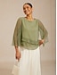 Dam Chiffong toppar Elegant 3/4 ärm Rund hals Vanliga toppar Bröllopsgäst Plisserad Multi lager Metallisk Ljusgrön Sommar Vår Höst