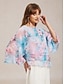 Dam Skir blus Chiffong toppar Blommig Elegant Klocka Rund hals Dagligen Bröllopsgäst Resort Wear Multi lager Ljusblå Sommar Vår Höst