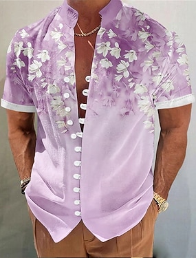 Herr Gradientfärg Palmblad Tropiska växter Skjorta Hawaii skjorta Knapp upp skjorta Kortärmad Hawaiisk Tillflykt Semester Helgdag Standkläder Sommar Vår Nedvikt 3D-utskrift krage skjortor Blå Purpur