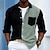 Herr Geometrisk Färgblock Lappverk Skjorta Ståkrageskjorta Långärmad Mode Casual Vardag Helgdag Vår Höst Kraghalsband Bandkrage 3D-utskrift Skjortor med knappar Armégrön Purpur Kaki
