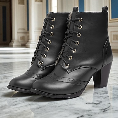 vintage viktorianska ankelstövlar med snörning för kvinnor – vita klackskor i retrostil för cosplay och speciella evenemang