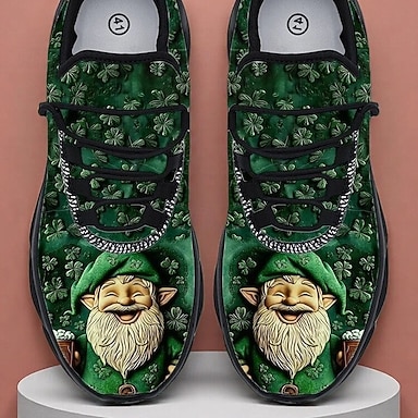 Herrsneakers med temat St. Patrick's Day – design med lyckoklöver och gnom, lätta och bekväma för St. Patrick-firanden