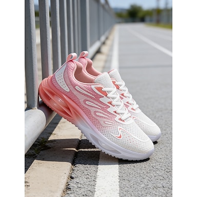 Rosa luftdämpande sneakers för kvinnor – lätta meshskor med rosa toning, andningsbar design, bekväma för löpning, promenader, gymträning och vardagskläder