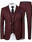 Herr Jul Fest Festdräkter Hakslag Vinröd Formell Solid färg Skräddarsydd passform 3 delar set