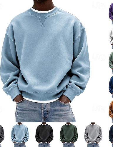Herr Tröja Manchestertyg Svart Vit Ljusgrön Marinblå Purpur Rund hals Slät Strukturerad Sport & Utomhus Ledigt Dagligen Streetwear Häftig Sportkläder Vår & Höst Kläder Pull Tröjor