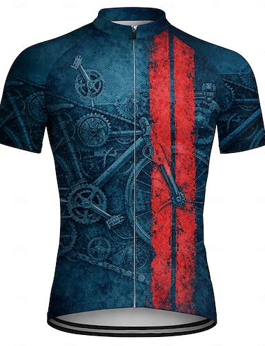 Herr Cykeltröja Geometrisk Kortärmad Cykel T-shirt Tröja med 3 bakfickor Bergscykling Snabb tork Anatomisk design Uppsugande Andningsfunktion sporter Blå Kläder