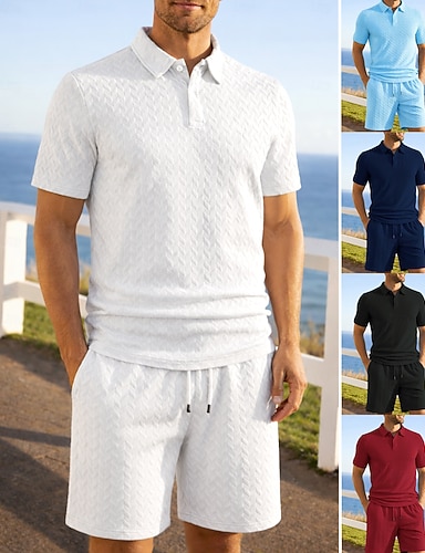 Herr Träningsoverall Träningsdräkter Set med pikétröjor och shorts Snörning 2 st Solid färg Atletisk kläduppsättning Sommar Vår Svart Vit Gymträning Joggning Löpning Fuktabsorberande Andningsfunktion