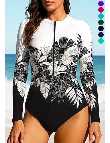 Dam Tätsittande dykardräkt Baddräkt Sportbadkläder Blommig Tropisk Dragkedja UPF50+ Snabb tork Lättvikt Långärmad Badtröja Surfing Strand Vattensport Sommar
