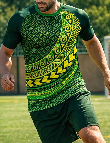 Herr Fotbollströja Geometrisk Aztek Brasilien Tröjor Atletisk t-shirt Sommar Kortärmad Ledigt Sport Elastan UPF 50 Snabb tork Fuktabsorberande Andningsfunktion Turnering Fotboll casual Löpning