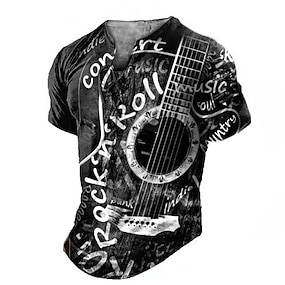Herr Guitarr Rolig Slang T-shirt Kortärmad T-shirt 3D-tryck Rund hals Skjorta Mode Dagligen Dagligen Gata Blå Svart Rubinrött Sommar Vår Kläder S M L XL XXL XXXL