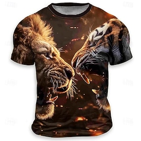 Herr Lejon 3D T-shirt Långärmad T-shirt 3D-tryck Rund hals Skjorta Mode Grundläggande Ledigt Dagligen Gata Blå Rubinrött Grön Sommar Vår Kläder S M L XL XXL XXXL
