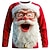 Jul Herr jultomten Rolig T-shirt Långärmad T-shirt 3D-tryck Rund hals Skjorta Mode Grundläggande 3D Gata Ledigt Dagligen Blå Blå 2# Rubinrött Sommar Vår Kläder S M L XL XXL XXXL