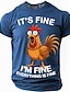 Rolig kyckling humoristisk tupp otrevlig t-shirt kortärmad t-shirt 3D-tryck rund halsad skjorta mode daglig gata daglig svart röd blå sommar vårkläder s m l xl xxl xxxl