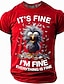 Jul Herr jultomten T-shirt Kortärmad T-shirt 3D-tryck Rund hals Skjorta Ledigt Gatustil Jul Utomhussport Helgdag Svart Vit Rubinrött Vår & sommar Kläder S M L XL XXL XXXL