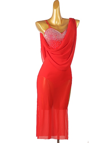 dans salsa latinsk dansklänning strass dam prestationsträning ärmlös hög spandex tyll