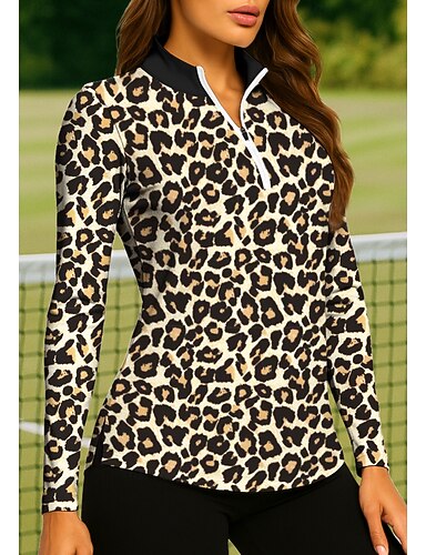 Dam Djur Leopard Lutning Skjorta Sporttröja Vandringspolotröja Tennisskjorta Långärmad Dragkedja Blommig UPF50+ UV-resistent Hög Elasisitet Fuktabsorberande Andningsfunktion Tennis Golf Pickleball