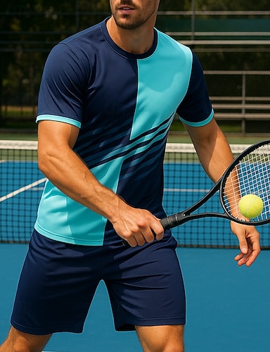 Herr Grafisk Geometrisk Sportset Skjortor & Shorts Tennisset 2 Kort ärm Svettavvisande Fuktabsorberande Andningsfunktion Tennis Golf Pickleball Röd Blå Orange Tenniskläder