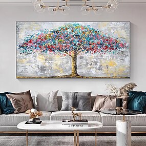 Handgjord original färgglad oljemålning av blommande träd på duk vägg abstrakt livsträdmålning för heminredning med uppspänd ram/utan innerram