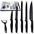 magicorange 6-delat köksknivset - vassa svarta matlagningsknivar i rostfritt stål kockknivsset för att skära kött &grönsak