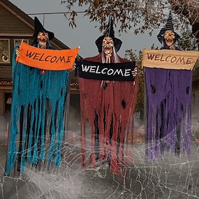 Halloween hängande skelettspöke - flygande skelettspöke med häxhatt hängande utomhusdekor - spökhus rekvisita inomhus utomhusdekoration