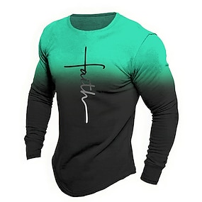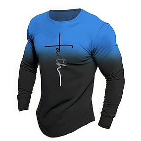 Herrars Bibel Grafisk Bokstav Tro T-shirt Långärmad T-shirt 3D Tryck Crew Neck T-shirt Mode Designer Casual Sport Utomhus Semester Utegång Blå Orange Brun Vår Höst Kläder
