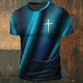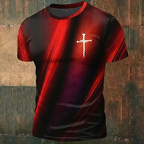 Herrars Bibel Kors T-shirt Kortärmad T-shirt 3D-tryck Crew Neck T-shirt Vintage Cool Fest Semester Oktoberfest Svart Röd Blå Sommar Vår Kläder