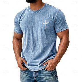 Mäns Bibel Kors T-Shirt Kortärmad T-shirt Syra Tvätt Crew Neck T-shirt Vintage Retro Avslappnad Strand Resa Blå Lila Grå Sommar Vår Kläder Mode