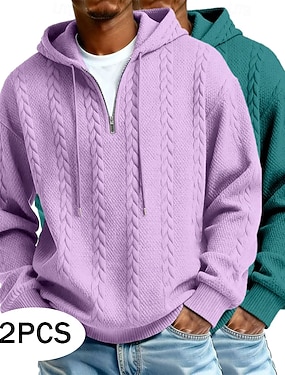 Herr Jacquard Huvtröja Tröja med tröja Huvtröja med dragkedja i Quarter Aprikos Vinrött Svart Vit Ljusgrön Huva Slät Dragkedja Strukturerad Sport & Utomhus Ledigt Dagligen Streetwear Häftig