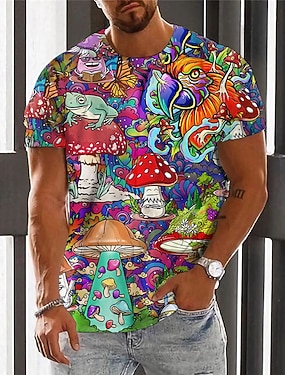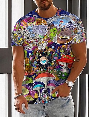 Herr 3D Print Abstrakt 3D T-shirt Kortärmad T-shirt 3D-tryck Rund hals Skjorta drivna Designer Fest Gata Ledigt Vit Gul Rubinrött Sommar Vår Alla årstider Kläder S M L XL XXL XXXL