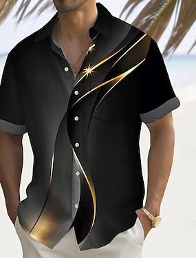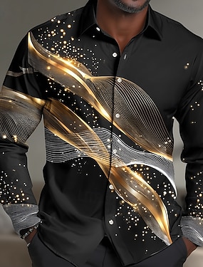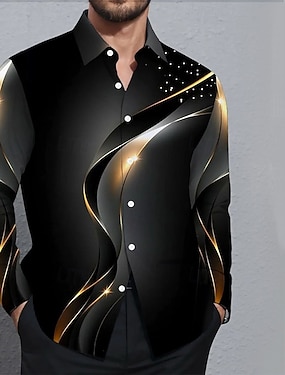 Herr Geometrisk Lutning Vågiga Skjorta Knapp upp skjorta Avslappnad klänningskjorta Långärmad Mode Casual Dagligen Streetwear Semester Sommar Vår Nedvikt 3D-utskrift krage skjortor Svart