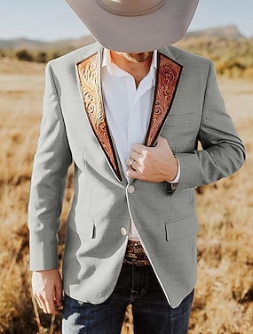 Herr Kavaj Företag Cocktailfest Bröllopsfest Mode Ledigt Vår Höst Polyester Färgblock Lappverk Ficka Bekväm Enkelknäppt Blazer Svart Beige
