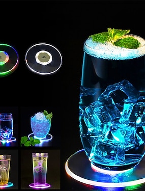 led glasunderlägg akryl kristall måltid matta kreativ glasunderlägg hållare bar dekoration ljus fest atmosfär ljus kreativ nattlampa