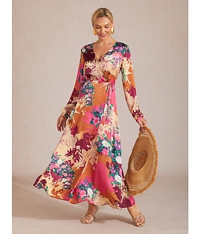 Dam Byxor Avslappnad Rak Fullängd Satäng Mönster Modernt Modernt Strandstil Semester Dagliga kläder Multi Color Vår & sommar XS S M