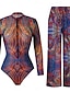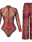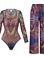 Dam Badkläder En bit Monokini Baddräkt Magkontroll Hög midja Smal Öppen rygg Semester Standkläder Blommig Rund hals Långärmad Baddräkter