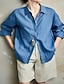 Dam Linneskjortor i bomull Blus Knappar Slät Elegant Stylish Långärmad Tröjkrage Vanliga toppar Dagligen Arbete Helgdag Blå Vit Rodnande Rosa Vår Höst