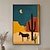 handgjord sydvästlig väggkonst modern västerländsk inredning stor nattöken dukmålning abstrakt landskap kaktus hästmålning